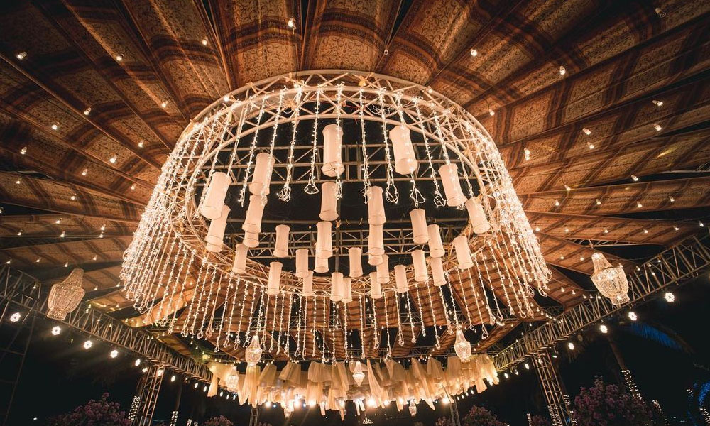 • String lights and chandeliers